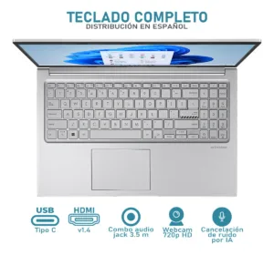 | Conectividad y Puertos | Bluetooth: 5.3 Cantidad de puertos USB-A: 3 Cantidad de puertos USB-C: 1 Jack 3.5mm para audífonos / micrófono: Sí Puertos Ethernet: No tiene Número de puertos HDMI: 1 Wifi: Wifi 6E – 802.11ax |
