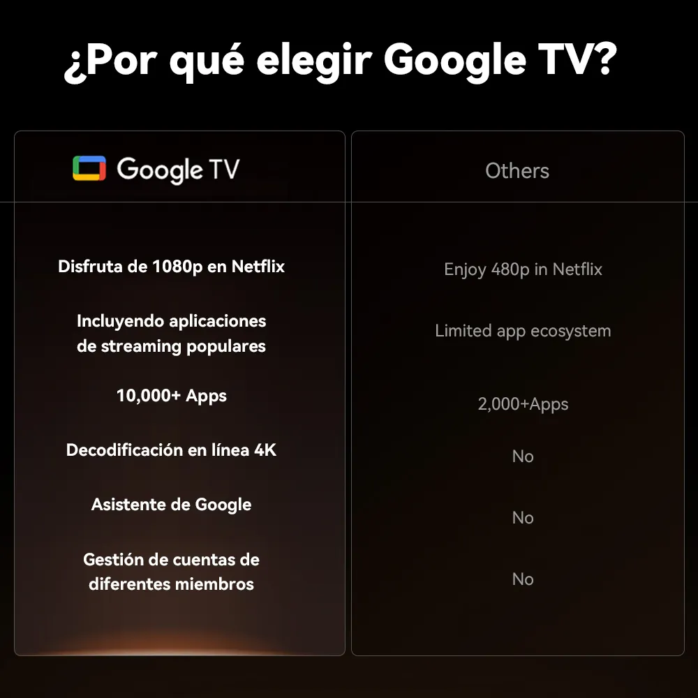 El sistema es una joya: Tener Google TV nativo es otro nivel. Nada de andar batallando con archivos APK raros.
