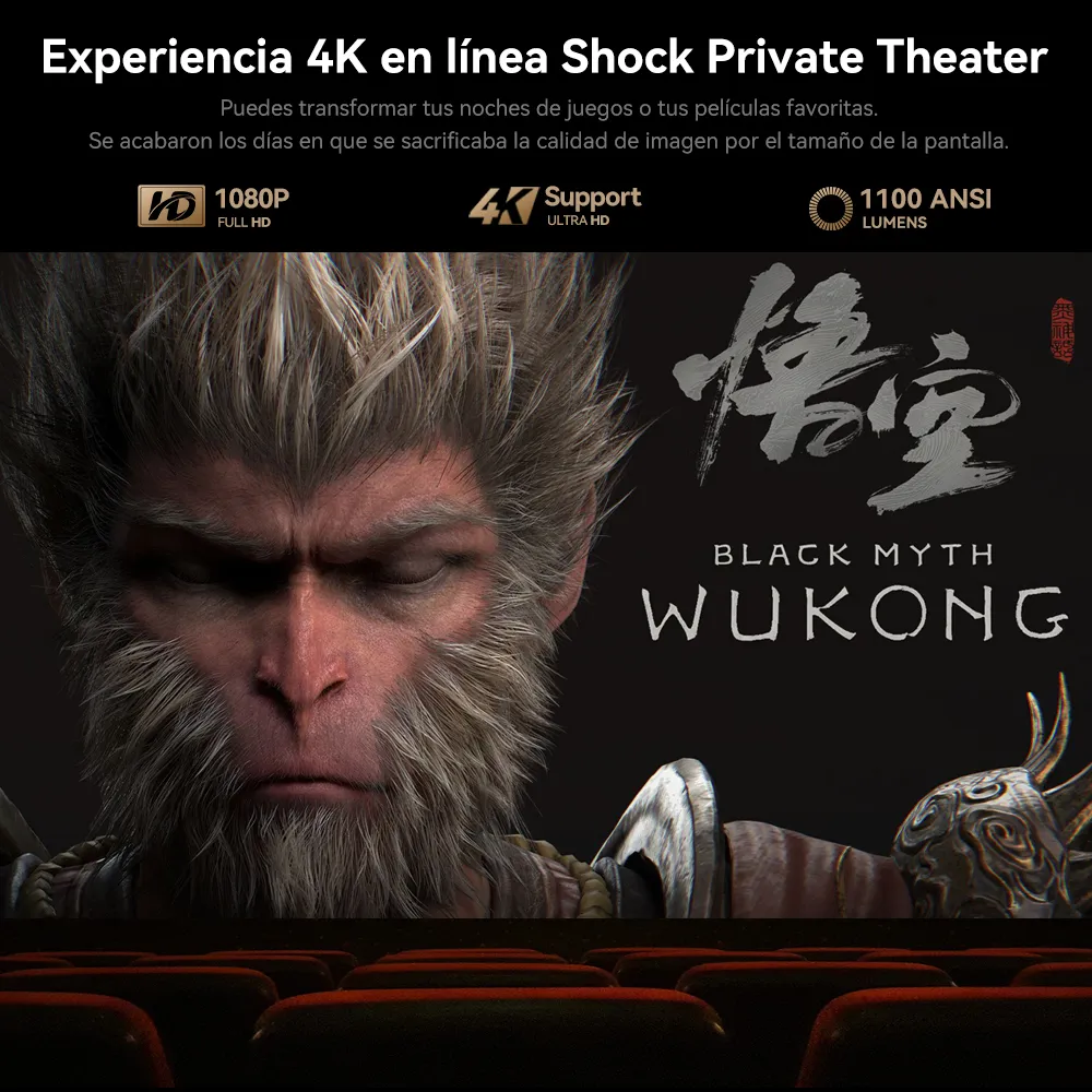 El mejor proyector precio calidad full hd excelente imagen y calidad de sonido no pierde resolución y está en pantalla de 150 pulgadas. 😎.