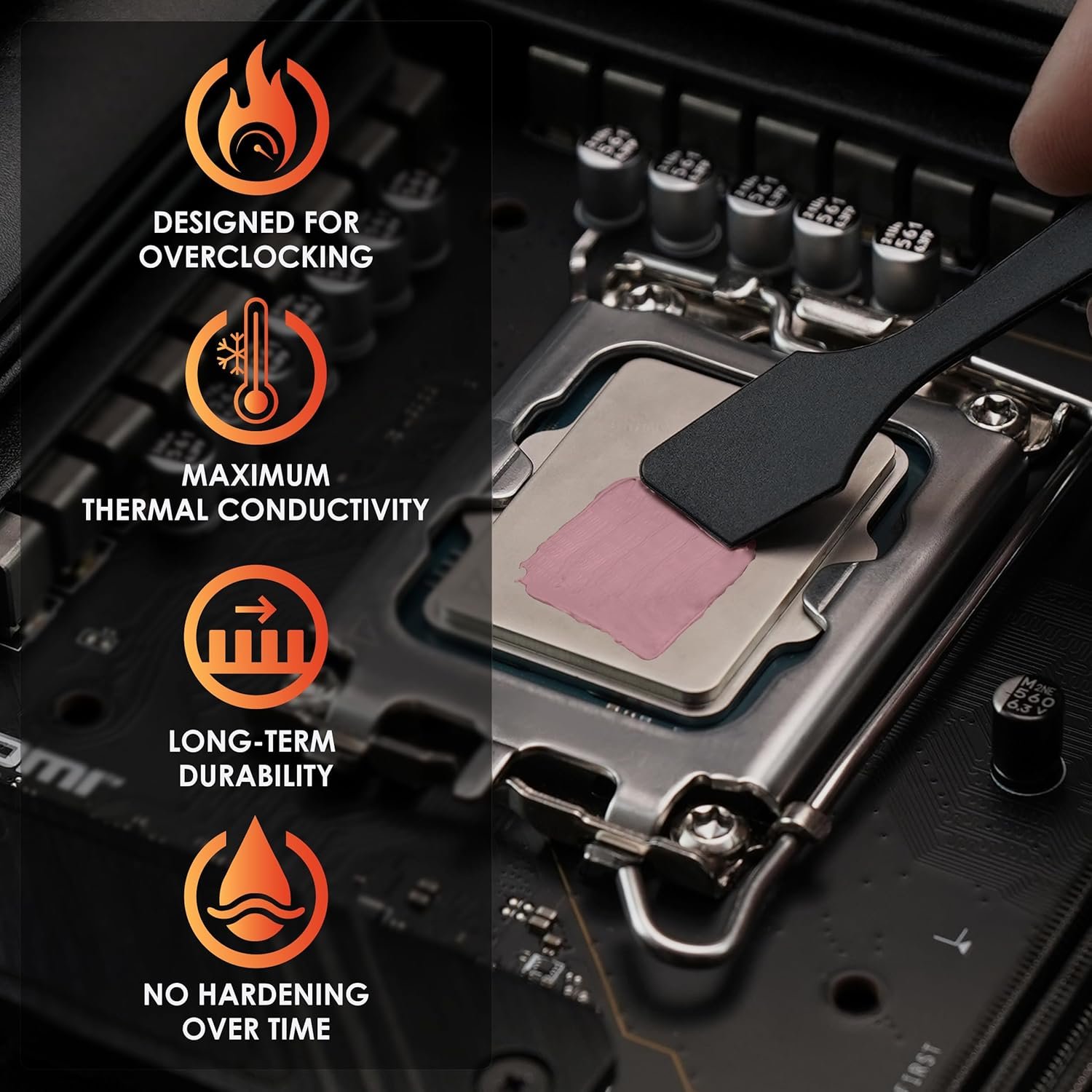 No requiere tiempo de curado (funciona bien desde el primer encendido) y mantiene su estabilidad incluso en sesiones prolongadas de gaming o renderizado intensivo.